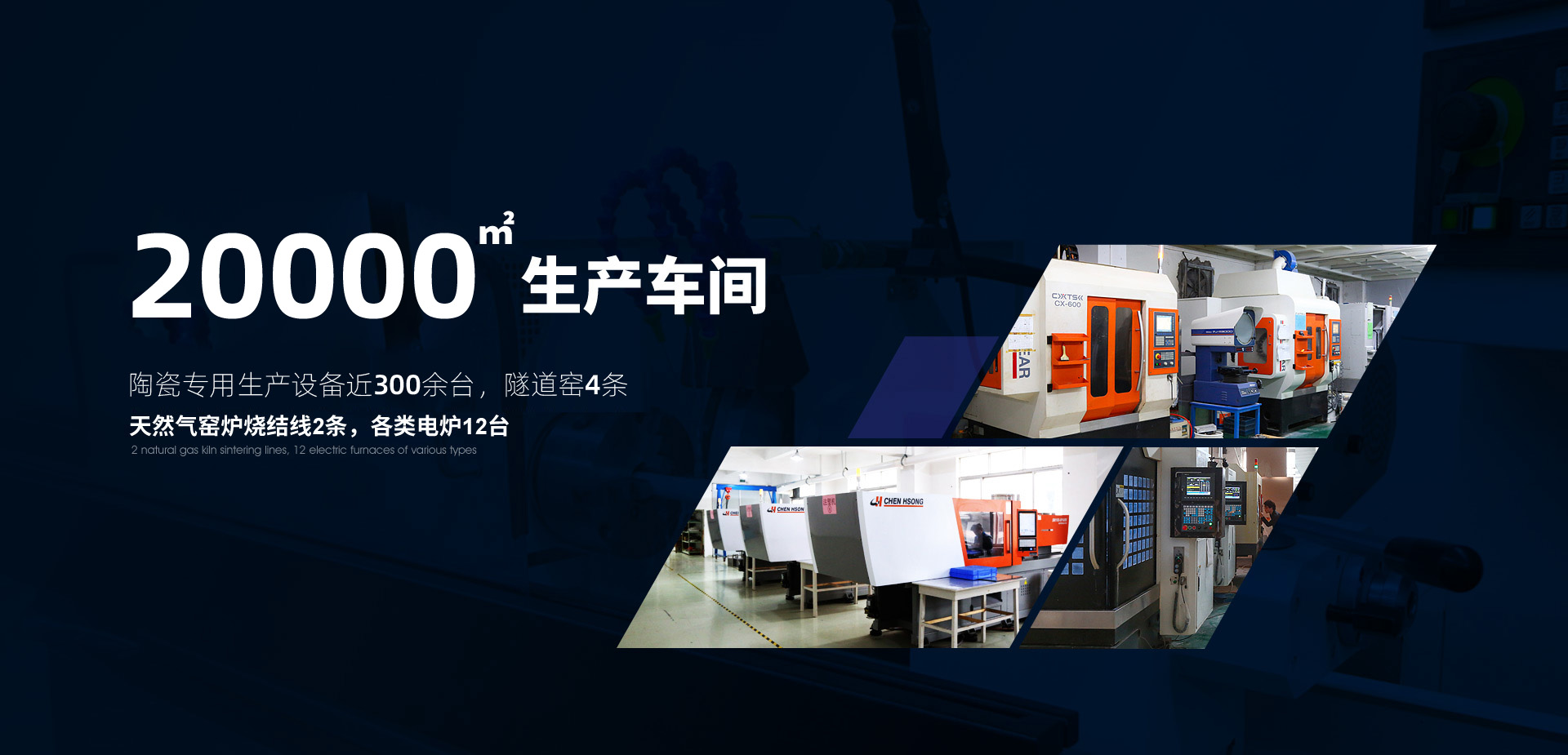 康柏工業工廠現有車間20000平方米,擁有陶瓷專用生產設備近300余臺,隧道窯4條,天然氣窯爐燒結線2條,各類電爐12臺。可生產各類氧化鋯陶瓷制品100噸/年。